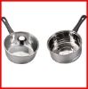 Main Material: stainless steel 201# Body Shape: belly shape, step & rolled edge Handle & Knob: black bakelite handle and knob Body Thickness: 0.4mm Bottom: encapsulated bottom with 1.0mm aluminium Finish: inside and outside mirror polish Lid: clear tempered glass Size: 18X8.5 Hcm steamer 18X8.5 Hcm saucepan with lid