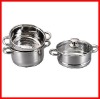 Main Material: stainless steel 201# Body Shape: belly shape, step & rolled edge Handle & Knob: ss hollow handle and knob Body Thickness: 0.4mm Bottom: encapsulated bottom with 1.0mm aluminium Finish: inside and outside mirror polish Lid: clear tempered glass Size: 18X8.5 Hcm steamer w/o lid 18X8.5 Hcm steamer w/o lid 18X8.5 Hcm Casserole with lid